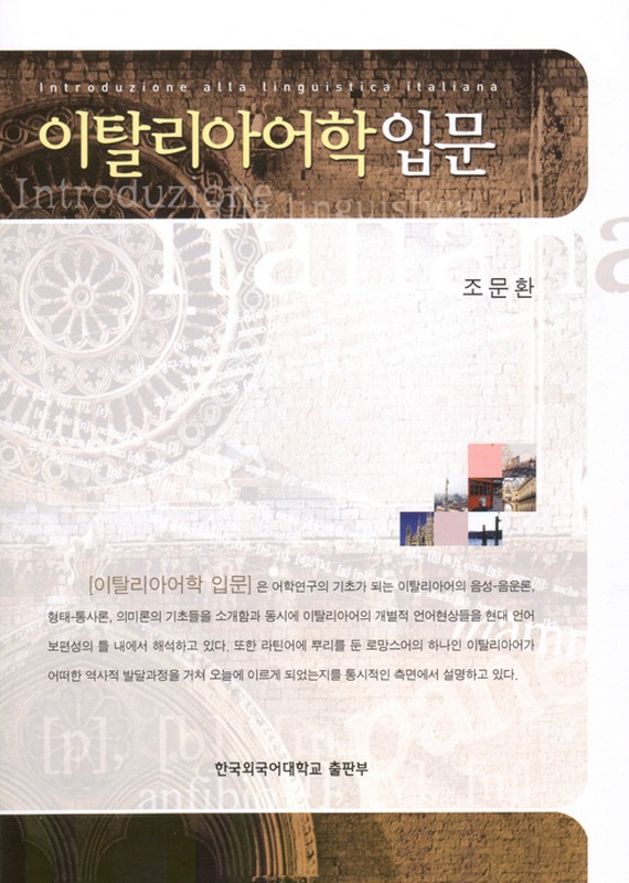 이 책은 이탈리아어의 언어적 특성을 이해하는데 필수적인 음성-음운, 형태-통사, 의미의 체계와 언어발달과정을 다루고 있다. 전반부인 문법론에서는 개별어로서의 이탈리아어가 갖는 특수성들을 언어보편성의 틀내에서 설명하고 있으며 후반부인 발달론에서는 라틴어에서 시작하여 현재에 이르기까지의 언어 발달 과정을 설명하고 있다. 또한 이탈리아어학의 기본 개념들을 개론적 수준에서 쉽게 이해할 수 있도록 난이도를 조절하였으며 이탈리아어에 나타나는 특이하고 흥미로운 현상들을 각 단원마다 삽입하였으므로 이탈리아어의 언어체계와 특성을 이해하는데 좋은 자료가 될 것이다.