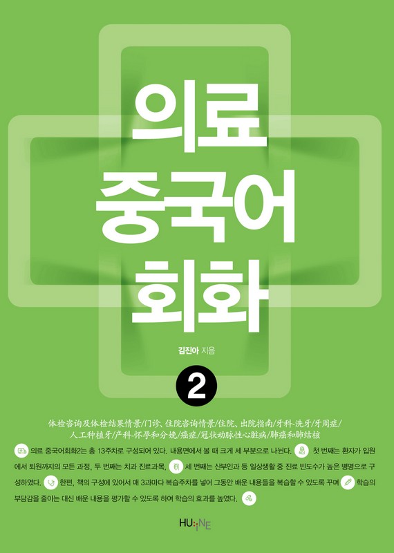 우리나라는 눈부신 경제성장과 더불어 의료분야에서도 발전을 이루어 2006년에는 외국인 환자를 2천만 명 유치하여 66조 원의 성과를 거두었으며, 2012년에는 4천만 명이 넘어 110조 원의 부를 창출하였다. 과거 부유층과 중증환자에 대한 미국, 독일 중심의 해외환자 시장은 싱가폴, 태국 등이 新의료 허브로 등장하면서 각국 간의 해외환자 유치시장 선점을 위한 경쟁이 심화되고 있으며, 이제는 미국과 일본도 국가차원의 해외환자 유치를 시작하기에 이르렀다. 뿐만 아니라 의료 선진국들은 신흥국 중심으로 의료 현대화 투자에 주력을 하고 있는 상황이다. 사이버한국외국어대학교 중국어학부는 이러한 시장의 흐름을 읽고, 시장 수요에 부합한 콘텐츠를 제작하여 학습자들에게 실용적인 전문분야의 이론과 필요 콘텐츠를 제공함으로써 수요자와 공급자 모두가 만족할 만한 성과를 이룰 수 있도록 노력하였다. 의료 중국어회화2는 의료 중국어 회화 시리즈 2권으로 총 13주차로 구성되어 있다. 내용면에서 볼 때 크게 세 부분으로 나뉜다. 첫 번째는 환자가 입원에서 퇴원까지의 모든 과정, 두 번째는 치과 진료과목, 세 번째는 산부인과 등 일상생활 중 진료 빈도수가 높은 병명으로 구성하였다. 한편, 책의 구성에 있어서 매 3과마다 복습주차를 넣어 그동안 배운 내용들을 복습할 수 있도록 꾸며 학습의 부담감을 줄이는 대신 배운 내용을 평가할 수 있도록 하여 학습의 효과를 높였다.
