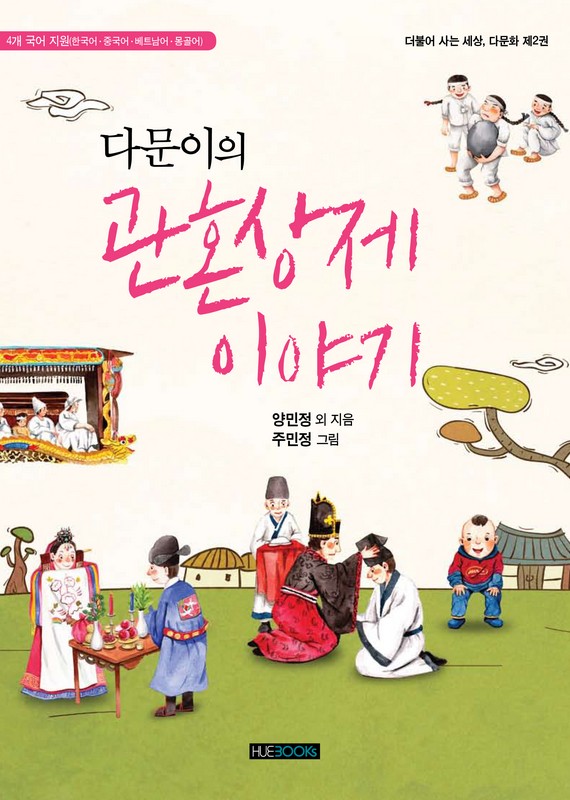 「다문이의 관혼상제 이야기」는 오늘날 이 시대가 요구하는 ‘다양성 속의 조화로운 사회’가 구축되기를 희망하는 집필자들의 마음이 모여 집필한 책이다. 「다문이의 관혼상제 이야기」는 다문화 가정 어린이들이 유교 사회인 한국의 관혼상제 의례를 이해하고, 엄마 아빠의 나라의 관혼상제 의례를 통해 부모님 나라의 자랑스러움을 이해할 수 있도록 꾸몄다. 그래서 이 책에는 한국의 이야기와 다른 나라의 이야기가 함께 실려 있다. 한국의 관혼상제 이야기는 중국어, 베트남어, 몽골어로 읽을 수 있도록 하였으며, 중국, 베트남, 몽골의 관혼상제 이야기는 한국어로 번역하여 쉽게 이해할 수 있도록 편집하였다. 이러한 노력은 다문화 가정 아이들이 엄마 아빠 나라의 문화와 말을 자랑스럽게 느끼도록 하기 위해서이며, 엄마 아빠는 자기 문화와 언어에 대한 존중감을 가질 수 있도록 하기 위함에서이다. 그리고 이 책을 통해 한국의 모든 부모와 아이들이 다양한 나라의 문화를 이해하고 접해 새로운 문화를 형성해 나갔으면 한다. 이 책은 ‘탄생과 어른 되기’, ‘결혼하기’, ‘죽음을 받아들이기’, 그리고 ‘돌아가신 분을 기리기’라는 네 가지 주제를 중심으로 한국과 중국, 몽골, 베트남의 문화를 비교할 수 있도록 하였다.